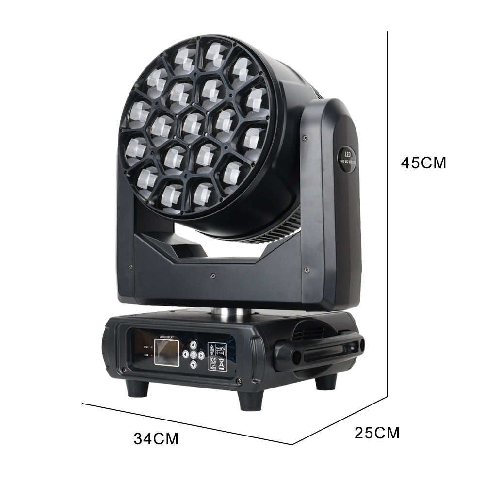 Professional 1940 Bee moving head light with 19 high-power 15W 4-in-1 LEDs.