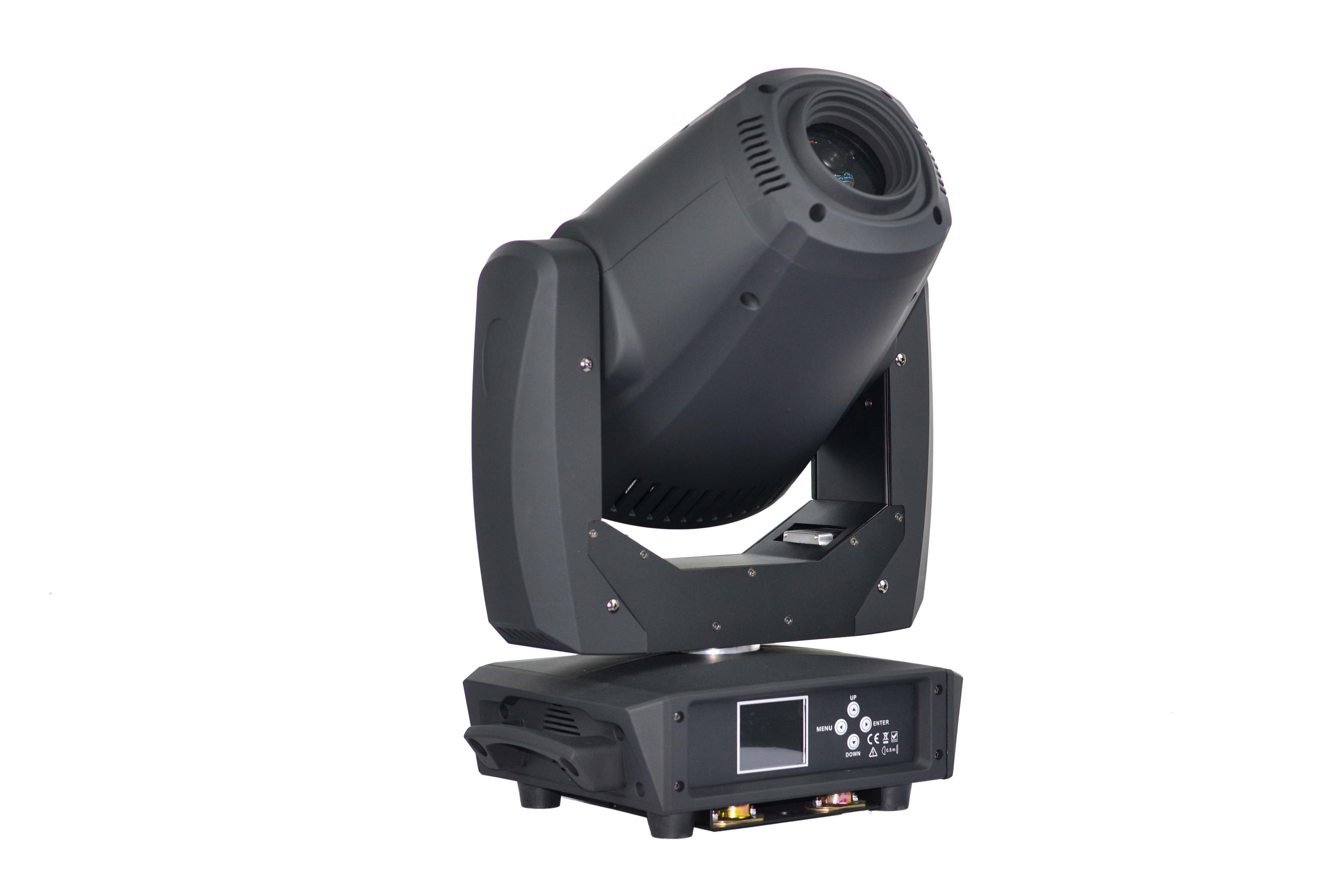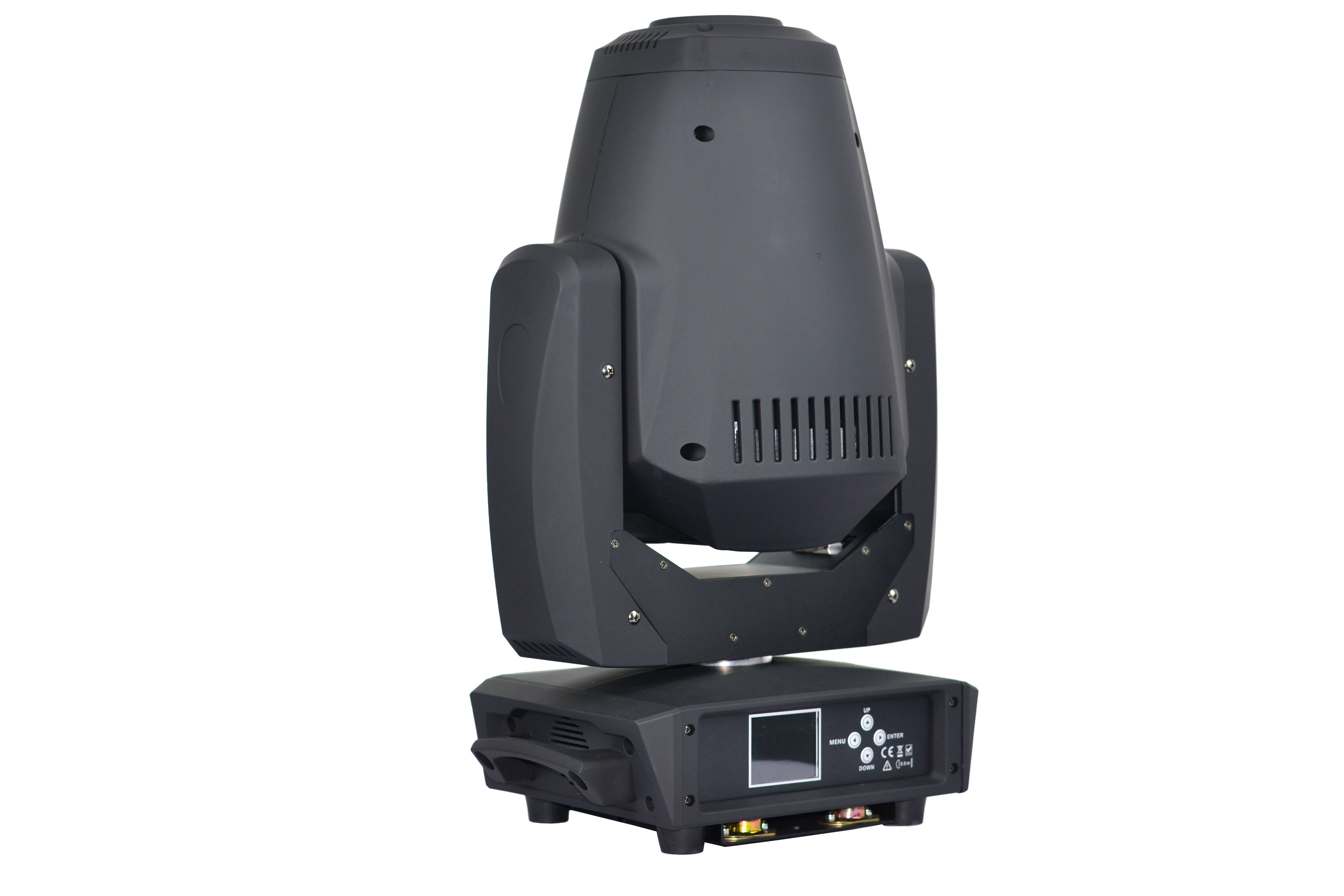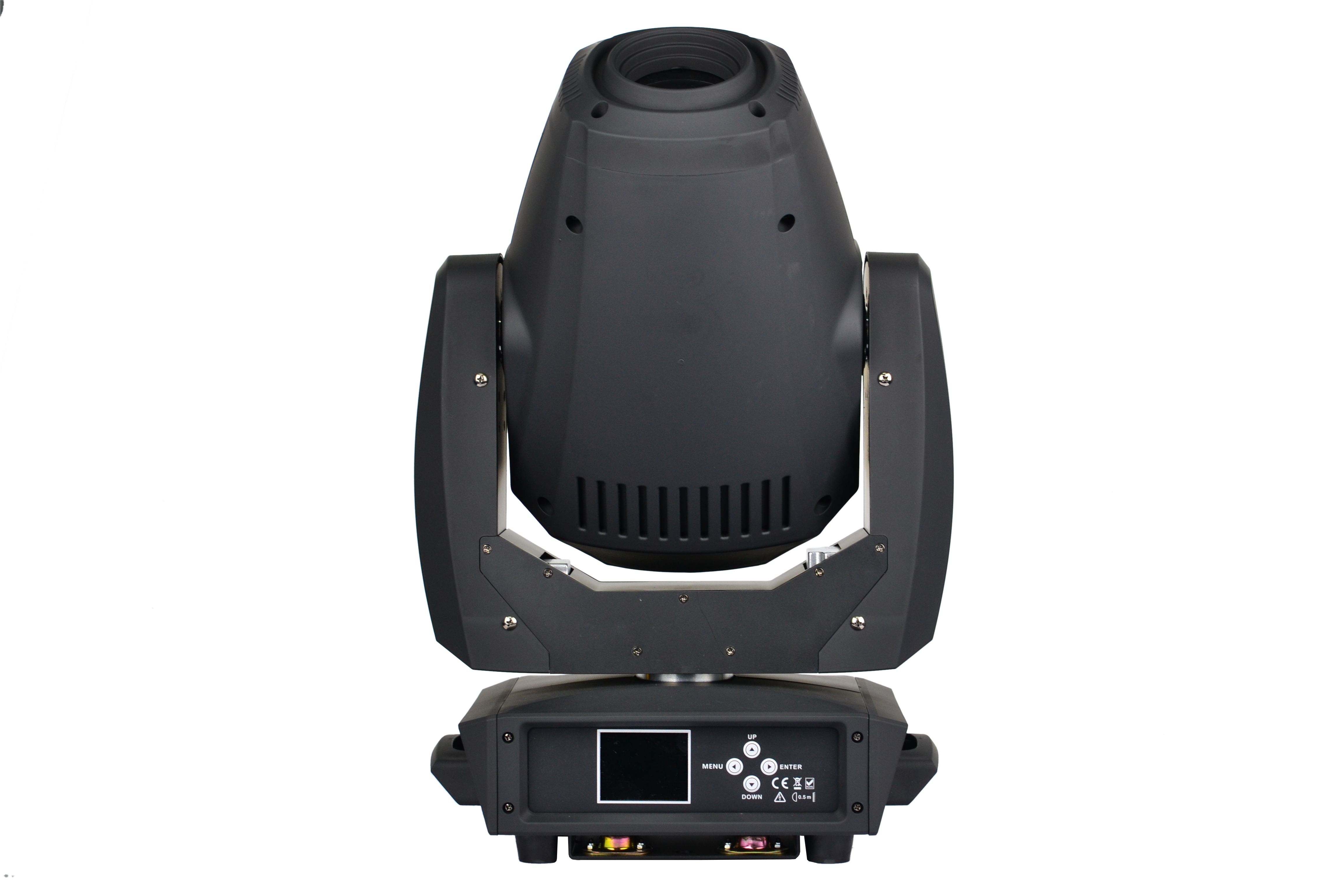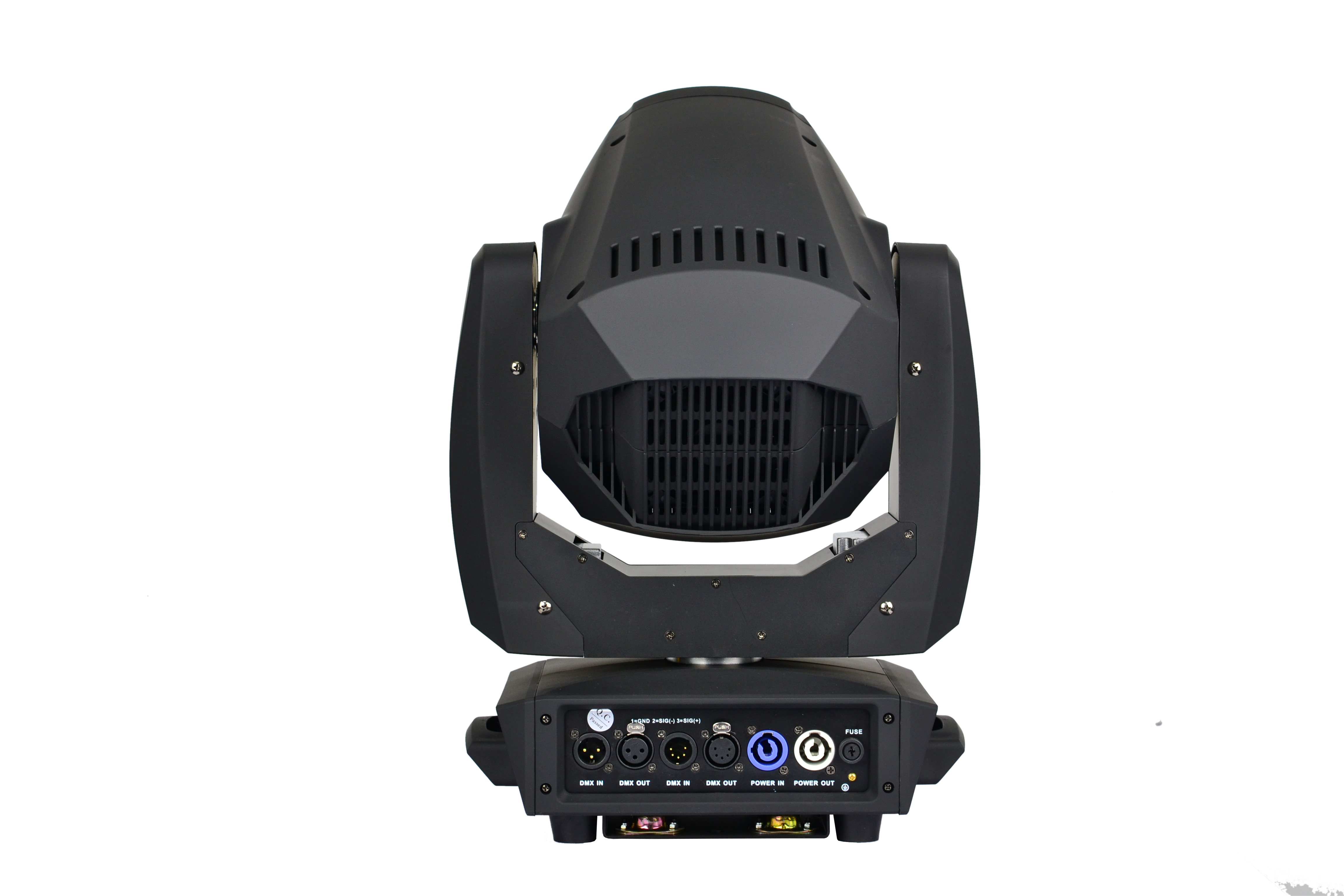 Professional 230W LED pattern moving head light featuring dual prisms, dynamic gobo and color effects, and smooth linear dimming and zoom. Designed for stage, theater, and event lighting applications.