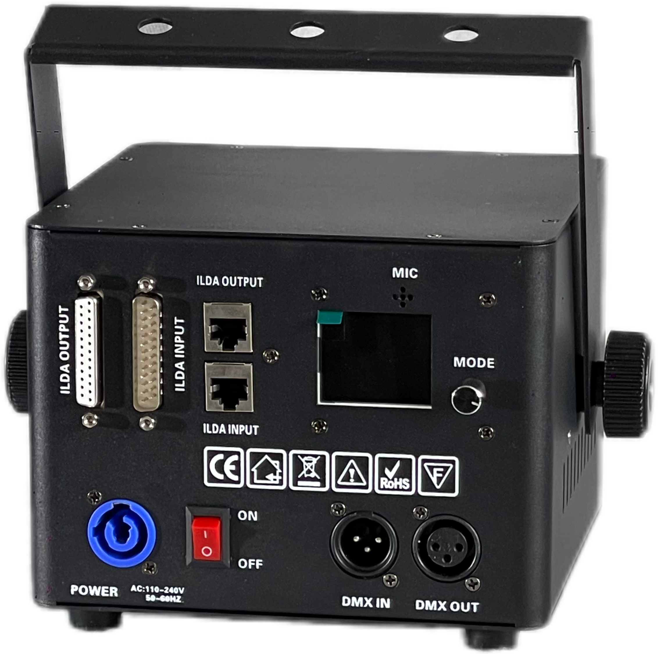 It is suitable for indoor scenes such as bars/nightclubs, concerts, small stages, event shows, DJ performances, etc., and is good at producing laser animation, pattern/text projection, and rhythm-synchronized visual effects.