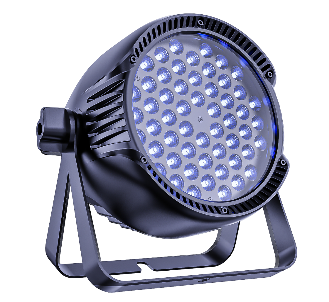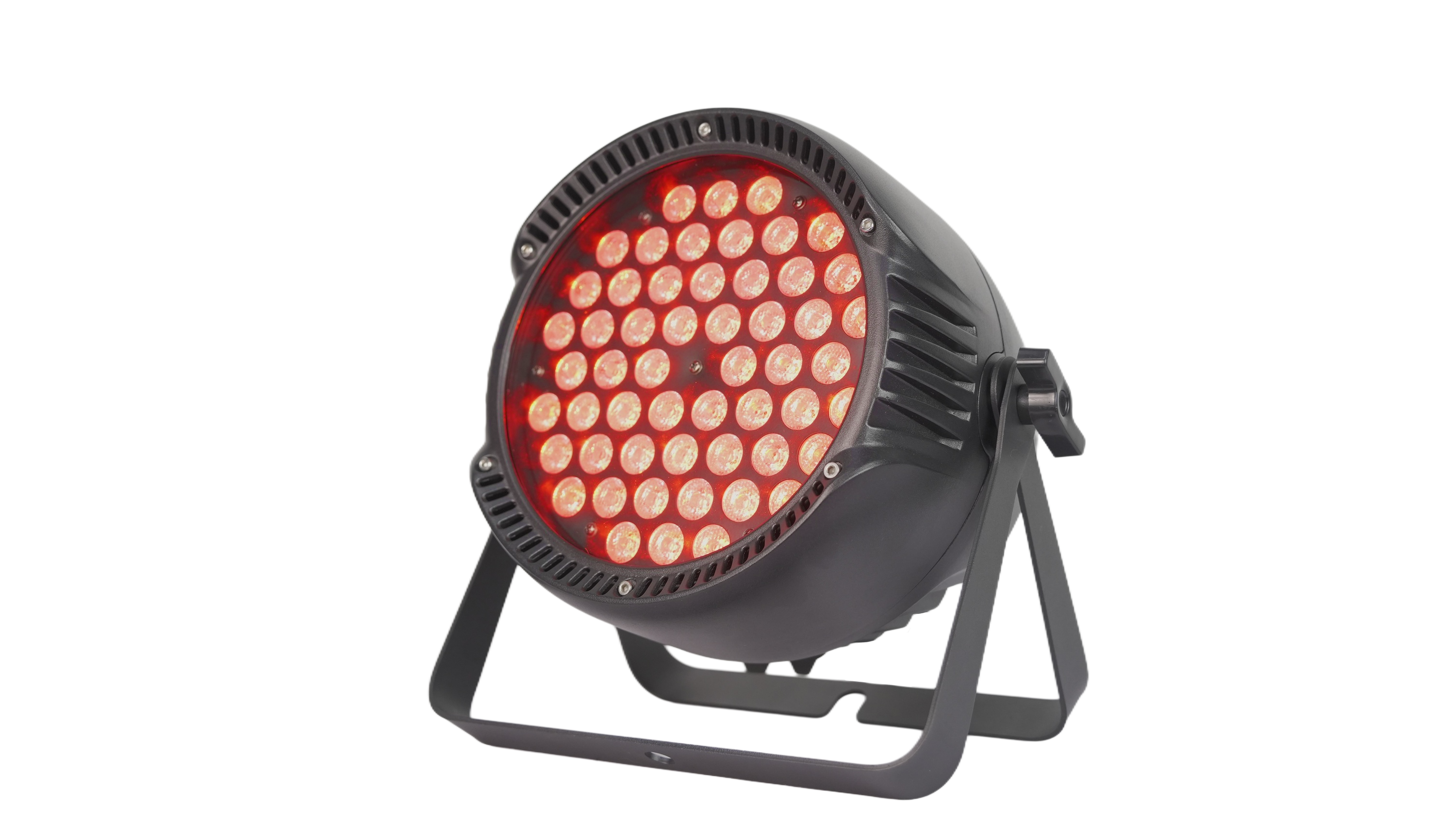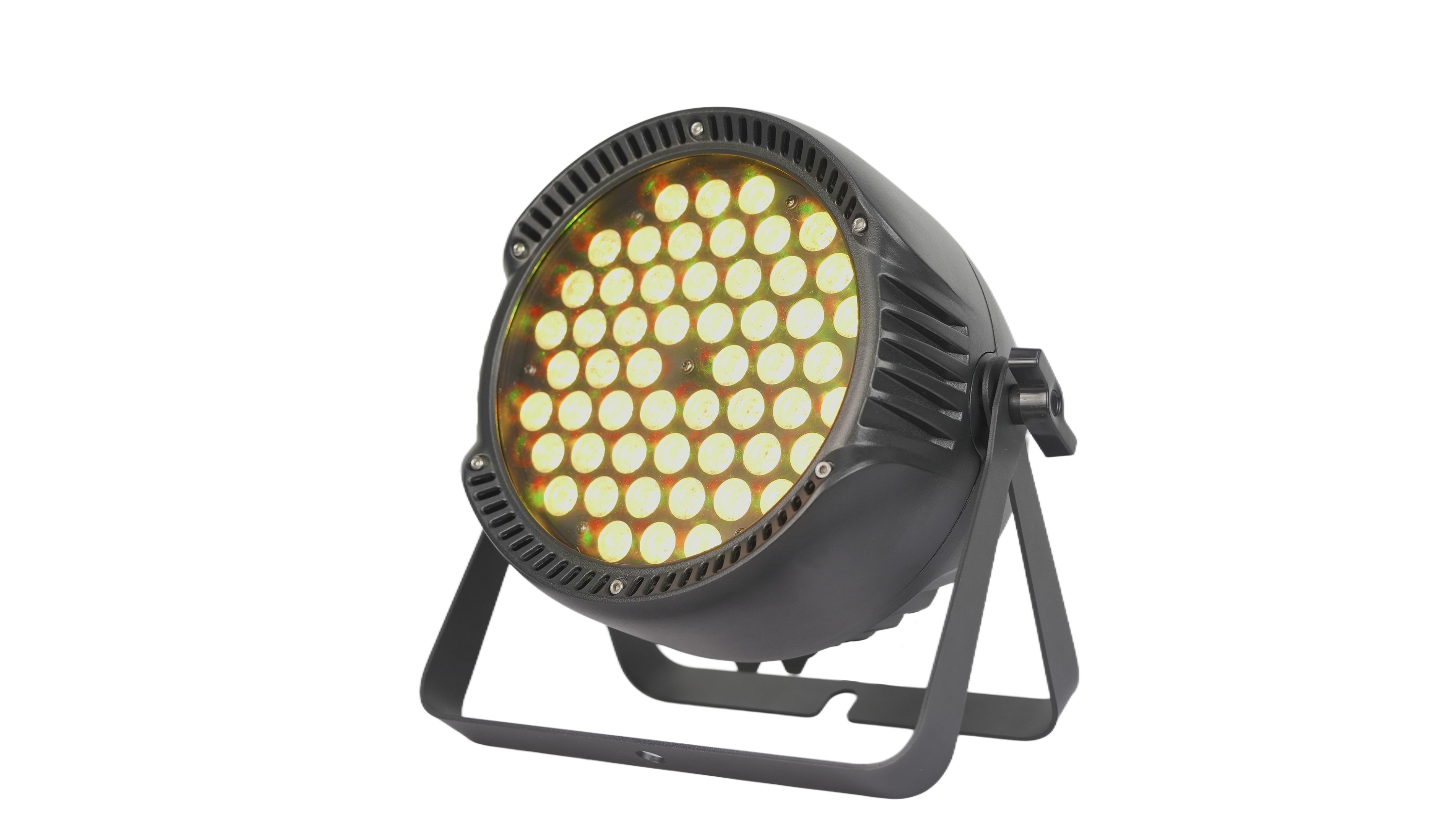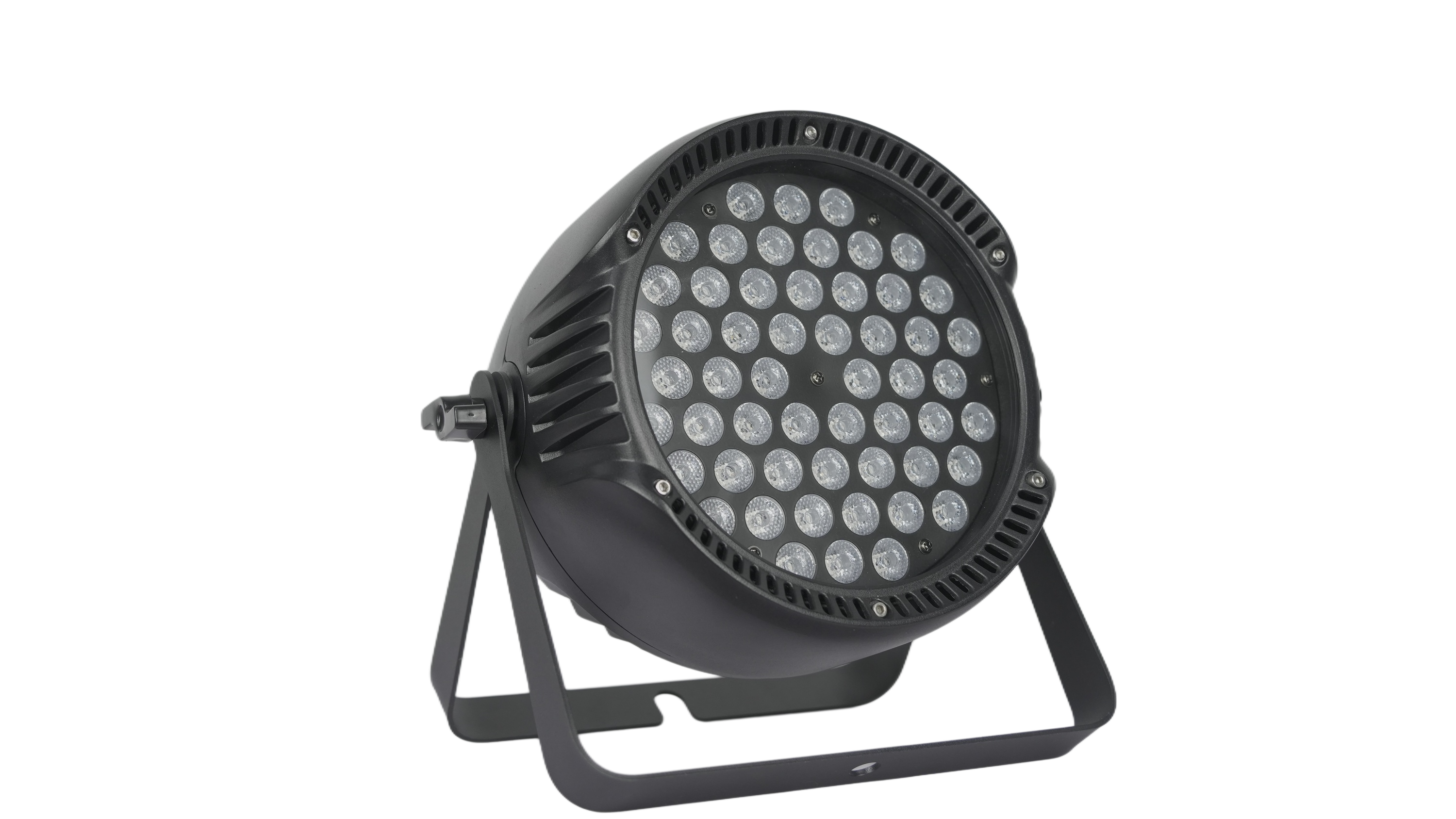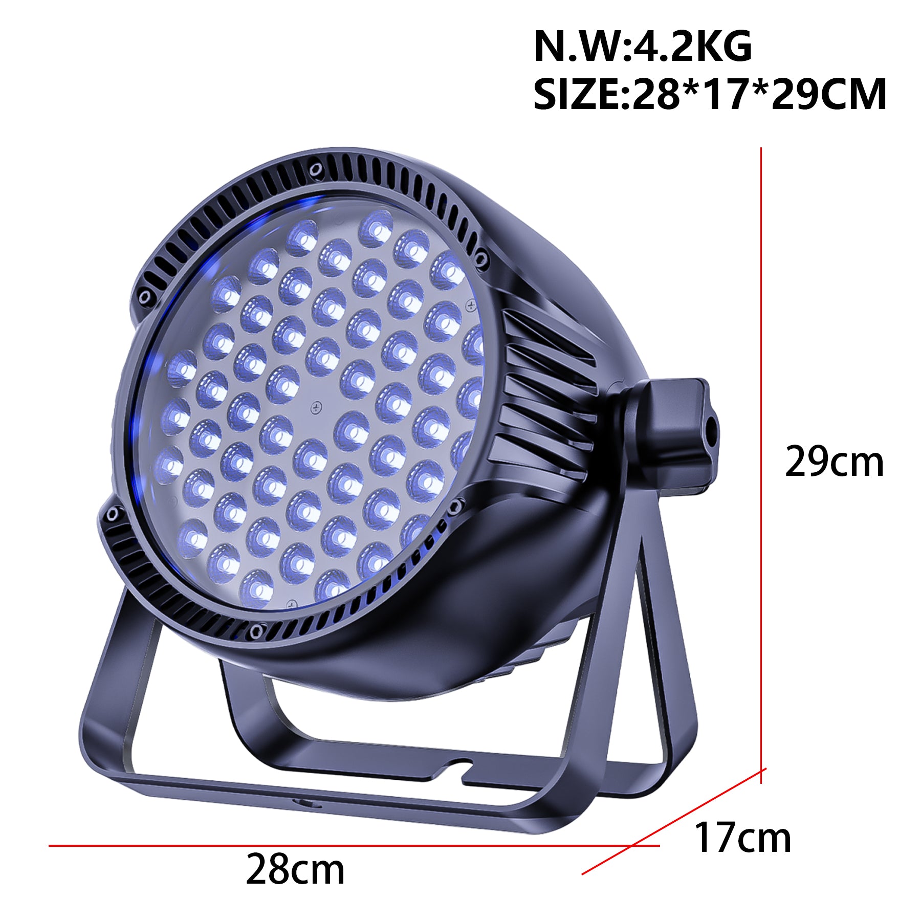 High-brightness 54x3W RGB LEDs, multiple control modes, adjustable strobe, and IP65 waterproof design.