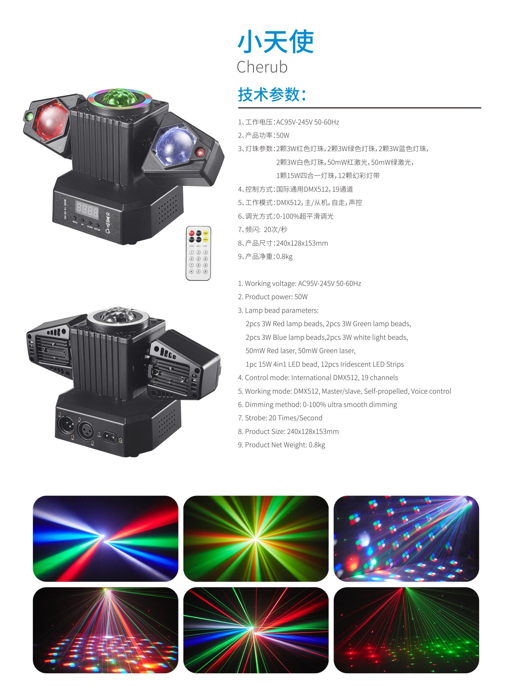 Colorful LED and laser lighting effects, ultra-smooth dimming, and multiple control modes make it suitable for small stages or event venues.